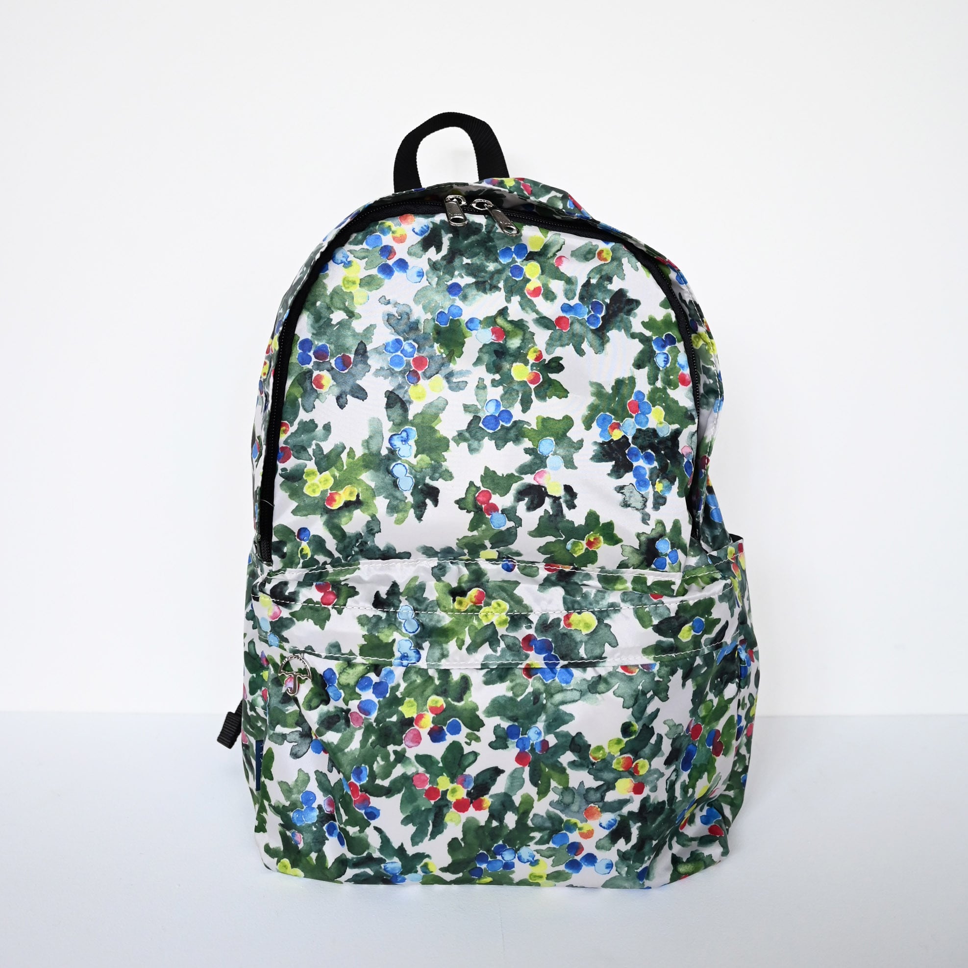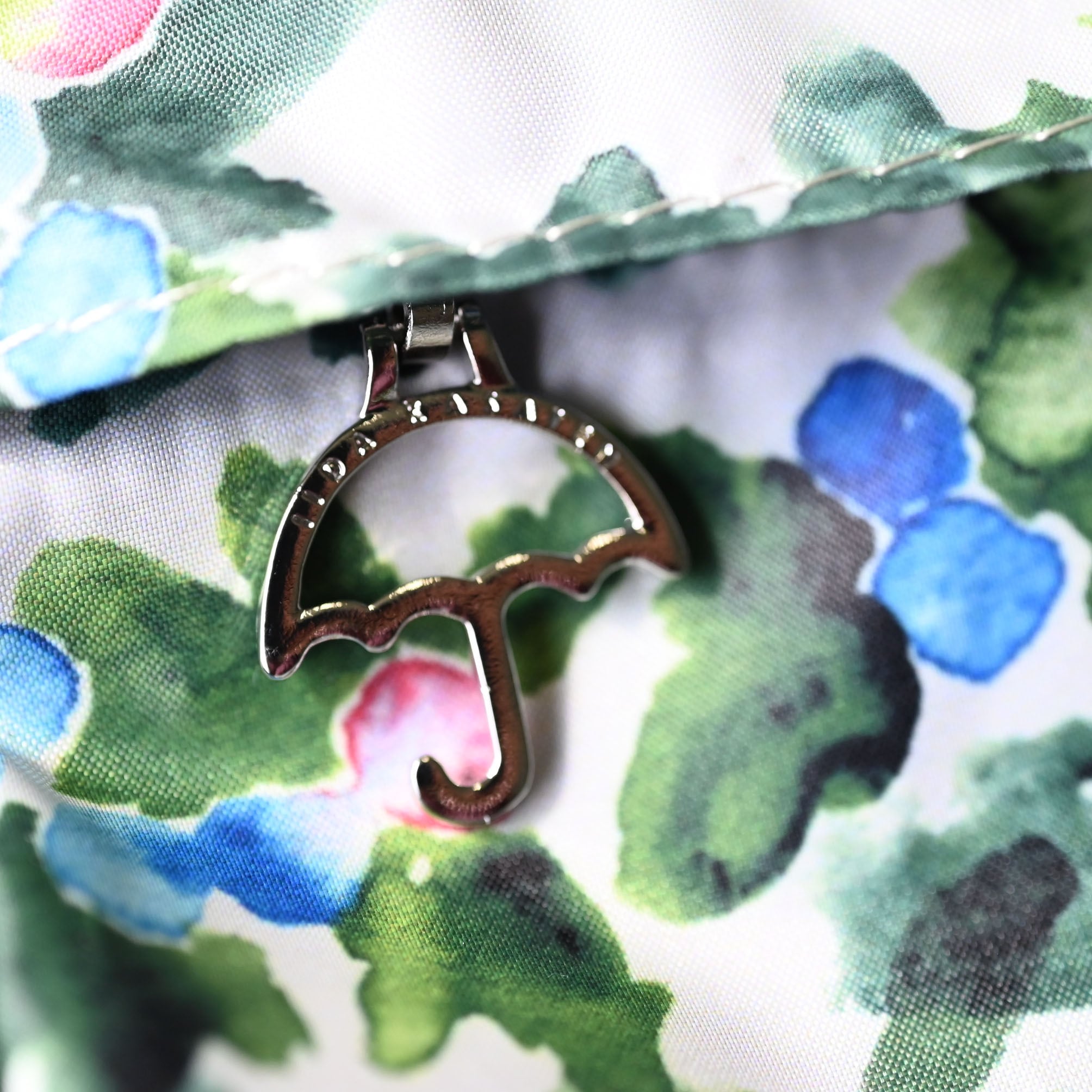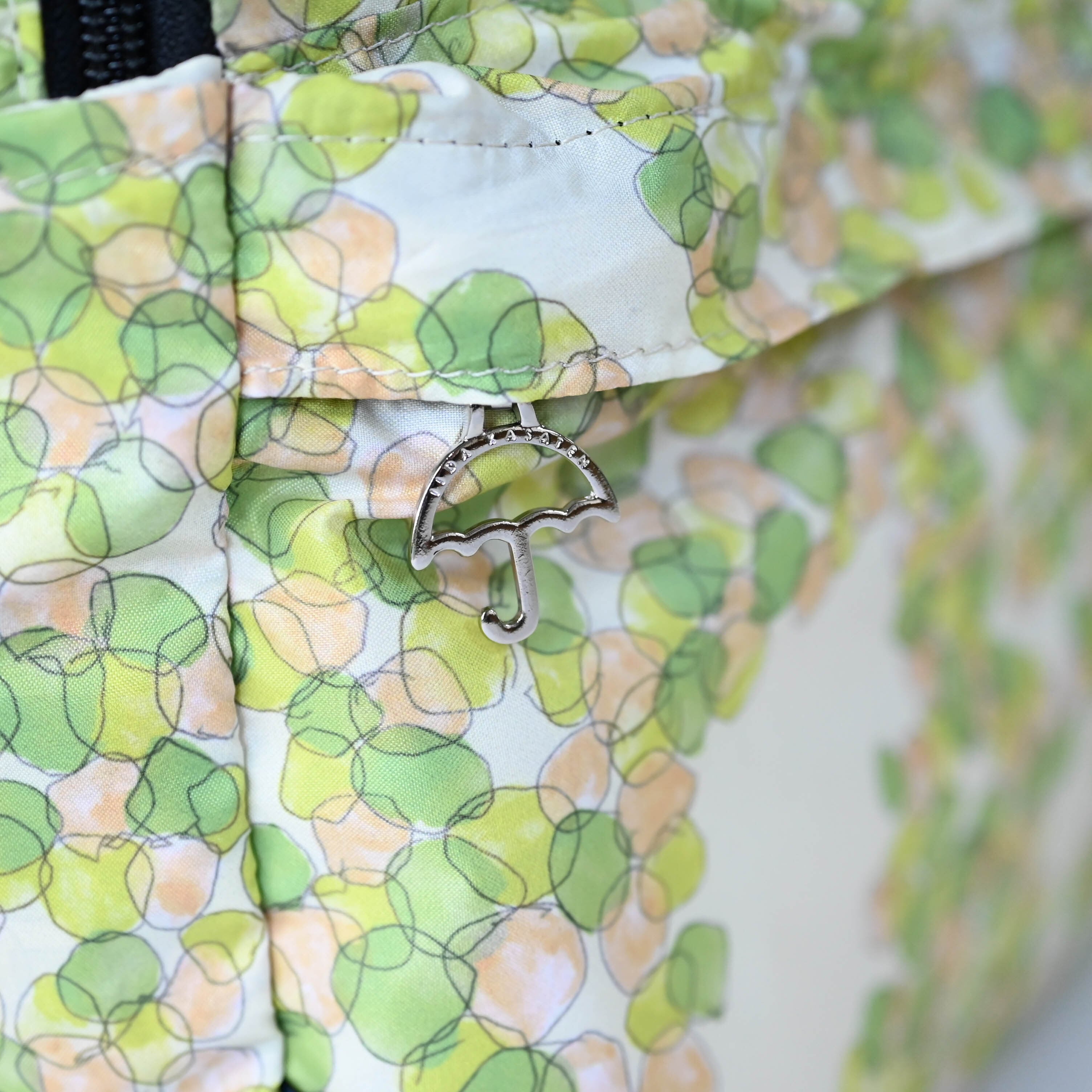 オリジナルの傘チャームが付いた大きなファスナーポケットと、