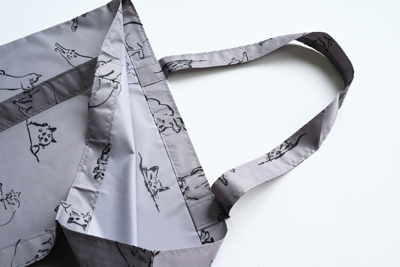 雨傘生地を使用したトートバッグ。
